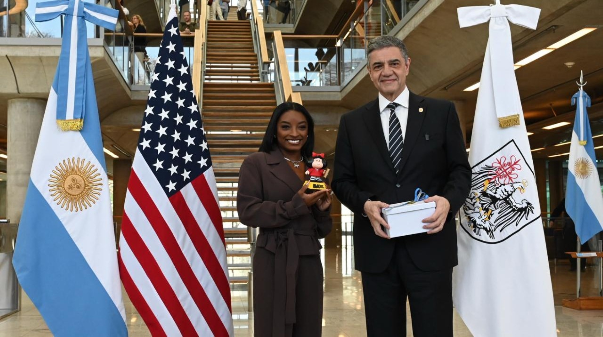 «Simone Biles no sólo es una de las deportistas olímpicas más destacadas de todos los tiempos, es un símbolo de superación, compromiso y perseverancia. Su historia inspira a millones de jóvenes y recibirla nos impulsa a seguir promoviendo los valores del esfuerzo y la inclusión a través del deporte», dijo el secretario de Deportes, Fabián «Chino» Turnes.
